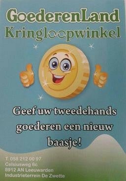 Kringloopwinkel Goederenland op de Celsiusweg 6c is Sponsor van de Stichting Rijk Voor Arm!, ook te vinden op facebook!